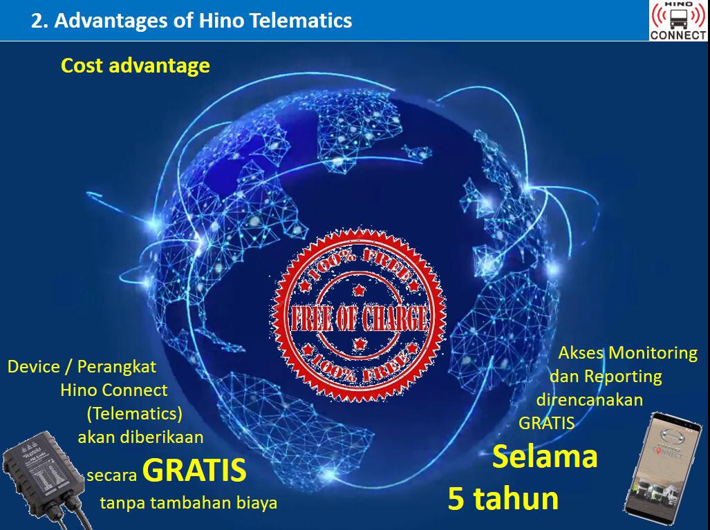 Cost advantage Device/perangkat hinoconnect akan berikan tambahan biaya akan diakses monitoring dan reporting direncanakan gratis selama 5 tahun